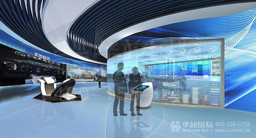 采用科技的表現手法,充分體現智慧科技屬性,采用拼接屏與互動臺相結合,通過互動程序,讓參觀者生動的了解東方航空集團內部文化及企業價值。