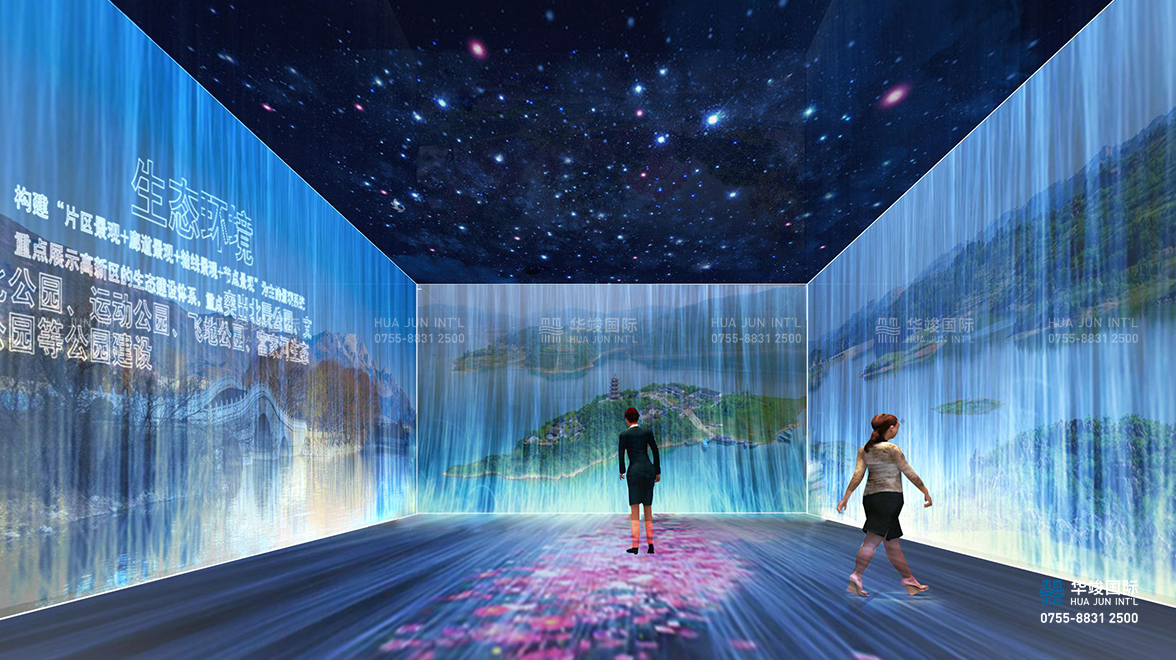 數(shù)字技術(shù): 玻璃幕墻 、 270度弧幕影院 、 互動(dòng)拍照摳像系統(tǒng)等