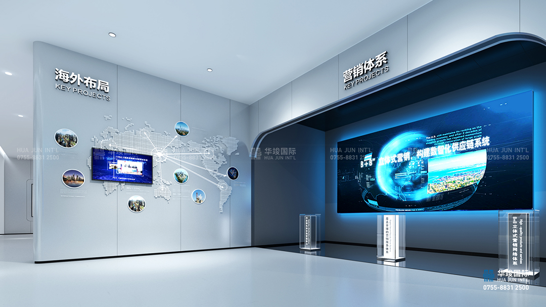 寶勝科技園區展館設計項目是由華竣出品的優秀作品,華竣以創新的智慧展廳設計理念,融合互聯網+思維,順應科技化趨勢,結合互動多媒體、數字影片、數字沙盤、虛擬現實等科技展項,打造震撼視覺的高品質科技展廳。