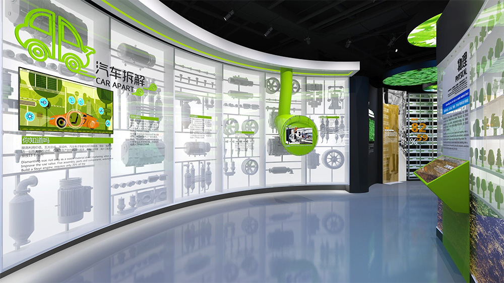展館內(nèi)容和展示分區(qū)規(guī)劃上,除了做一些基礎(chǔ)的圖文科普知識(shí)外,還可以設(shè)置一些實(shí)物展示區(qū),將一些可以重復(fù)利用的垃圾變廢為寶,展館內(nèi)的面積有限,所以不是所有展館都可以做到參觀和垃圾分揀流水線展現(xiàn)在同一個(gè)空間,這就需要設(shè)置一些多媒體展示區(qū),通過高科技展示手段實(shí)現(xiàn)這方面需求。