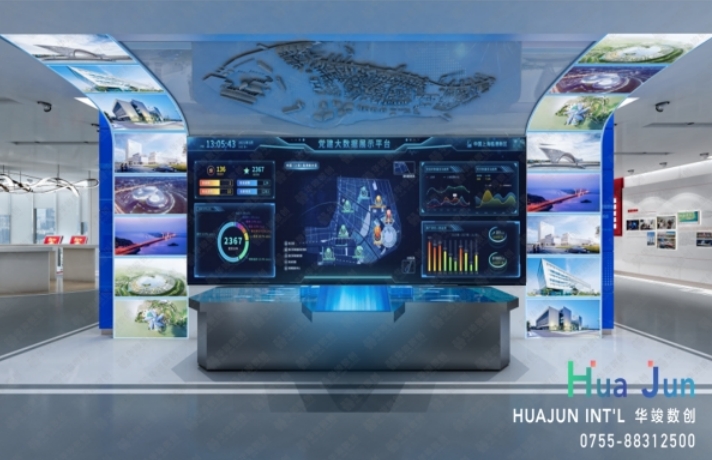數(shù)字技術(shù): 壁掛沙盤 、 LED查詢觸控屏 、 虛擬講解 、 沉浸式弧幕影院等